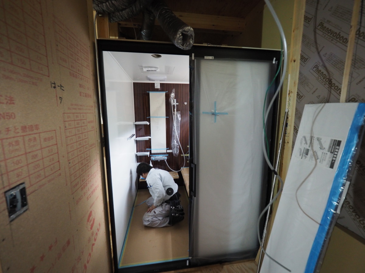 本日はユニットバスの据え付け工事がされていました